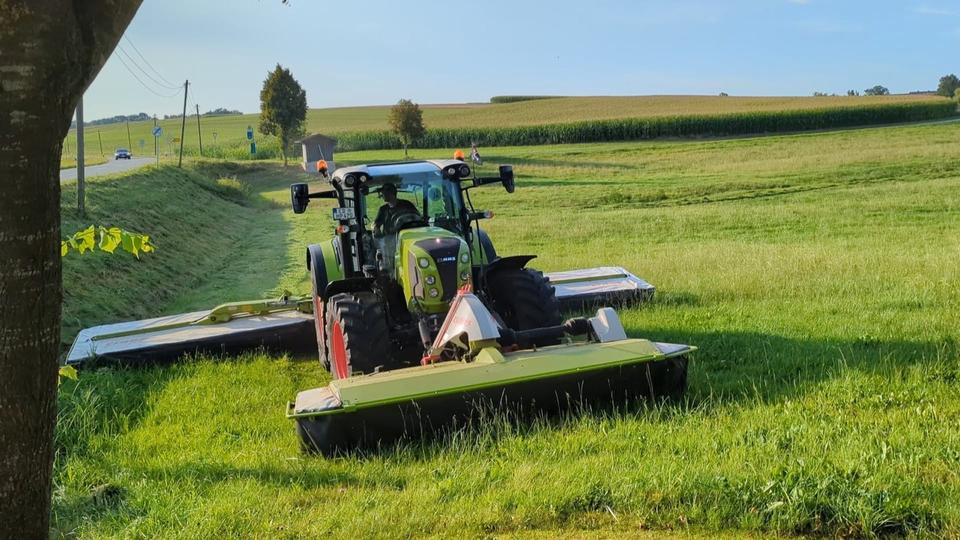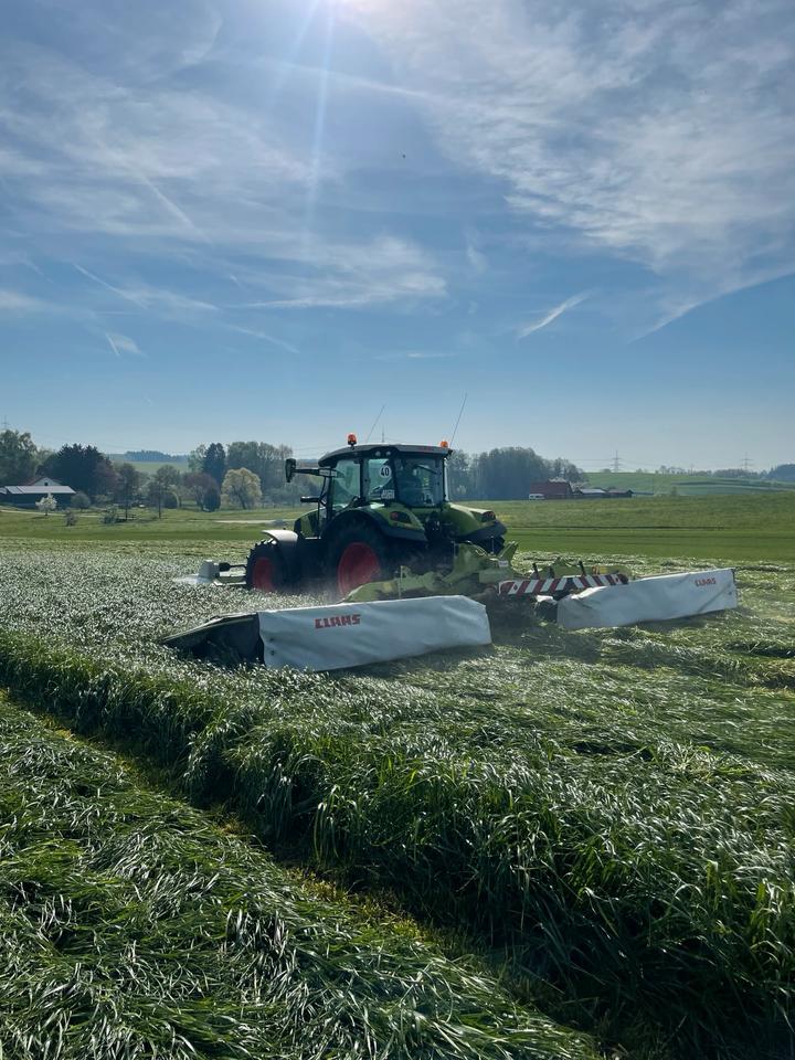 Wir übernehmen Mäharbeiten mit einen Claas Disco 9100 Schmetterling und einem Claas Corto 3200.